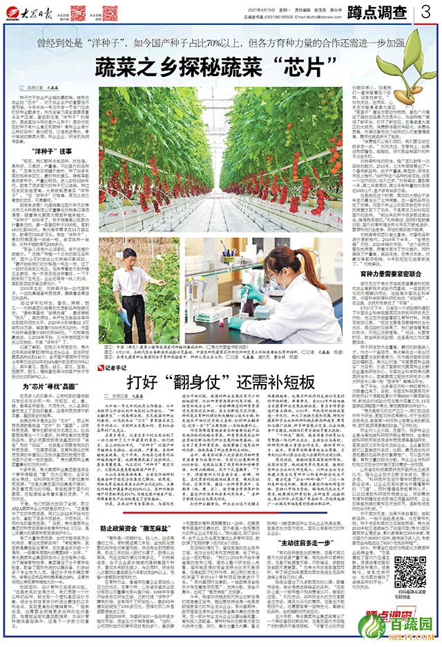 記者了解到,包括三木種苗在內(nèi),壽光近年來(lái)共培育起7家種業(yè)龍頭企業(yè),自主研發(fā)蔬菜品種達(dá)到140個(gè),全市國(guó)產(chǎn)蔬菜種子市場(chǎng)占有率已由2010年的54%提升到目前的70%以上,其中黃瓜、圓茄、絲瓜、苦瓜、豆類、西葫蘆、甜瓜、櫻桃番茄等作物國(guó)產(chǎn)種子市場(chǎng)占比達(dá)到90%以上。
