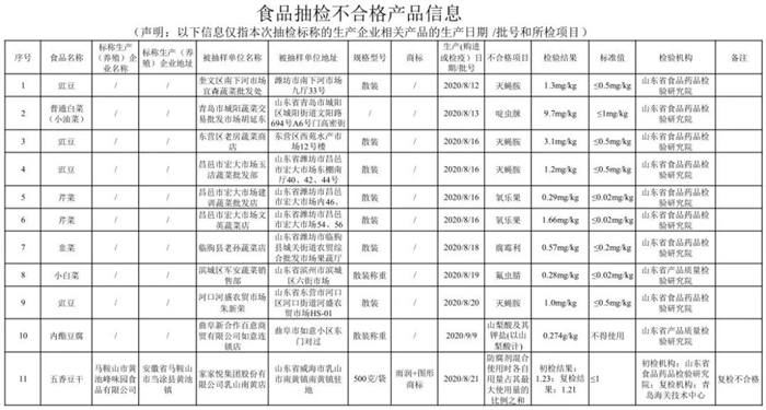山東省市場(chǎng)監(jiān)督管理局關(guān)于21批次食品不合格情況的通告